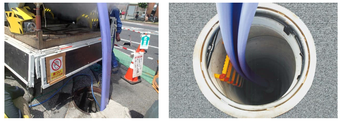下水道管のリニューアル「管路更生」。工事の際には地面を掘り起こすことがなく、工期が短く、コストを削減できる。