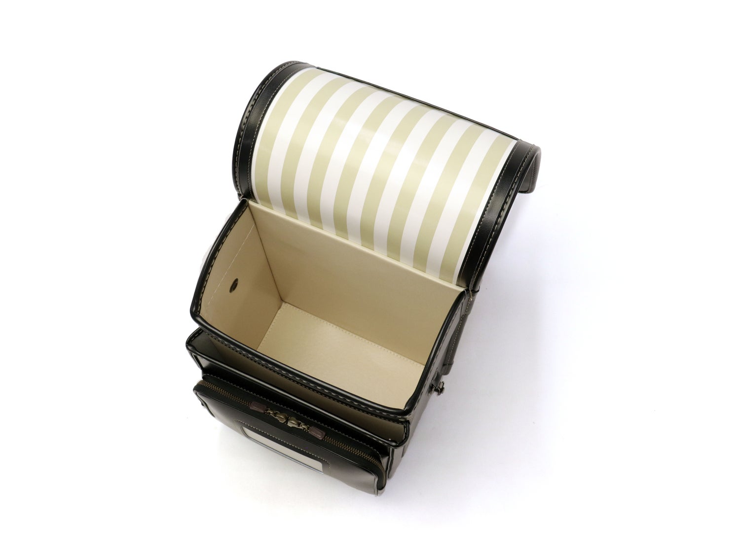 シンプルな佇まいを引き立てるパーツの美しさや、洗練された内装のストライプがポイント。子どもが「自分で選ぶ」経験を大切に、大人も笑顔になるランドセル選びを。