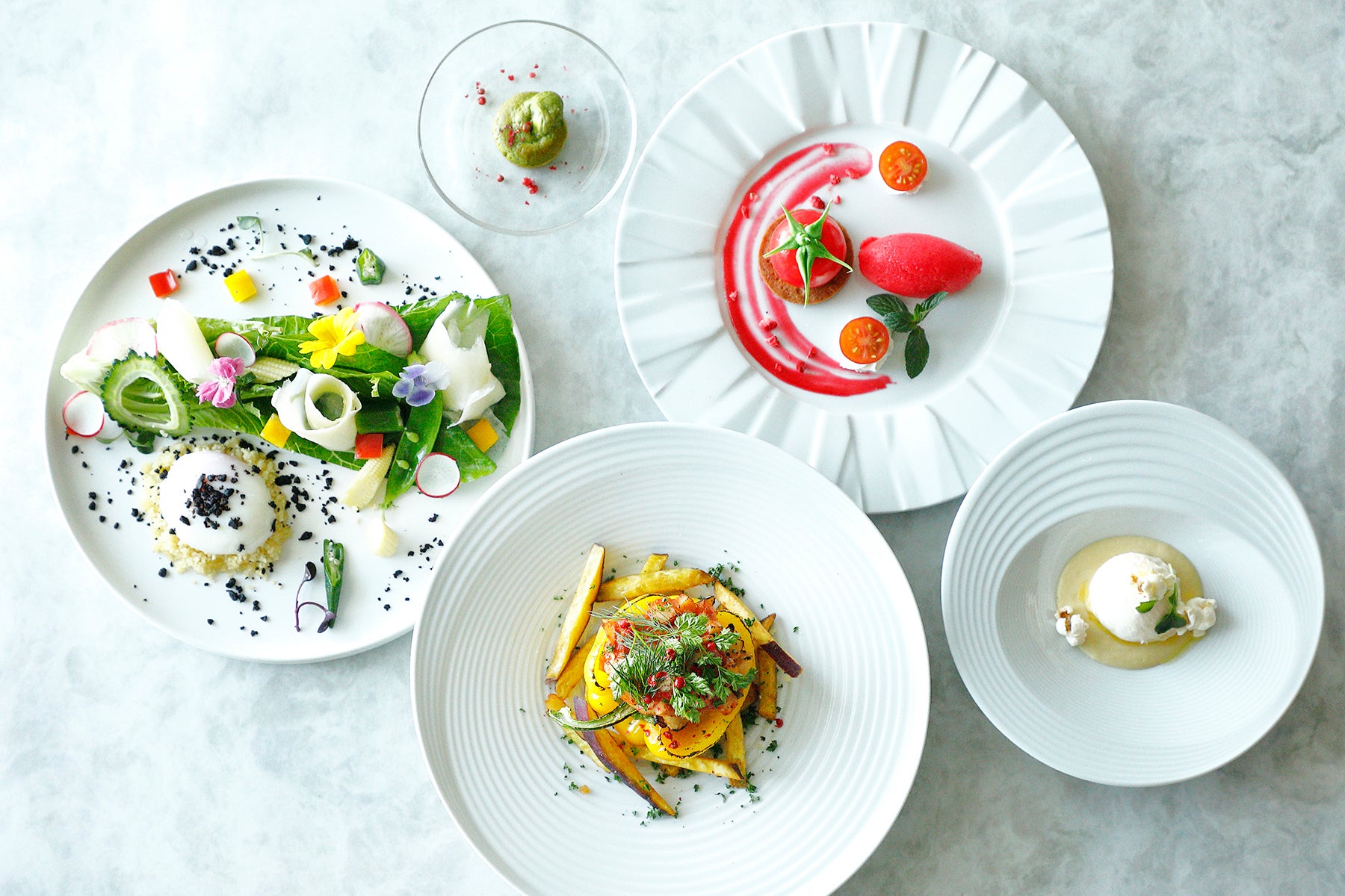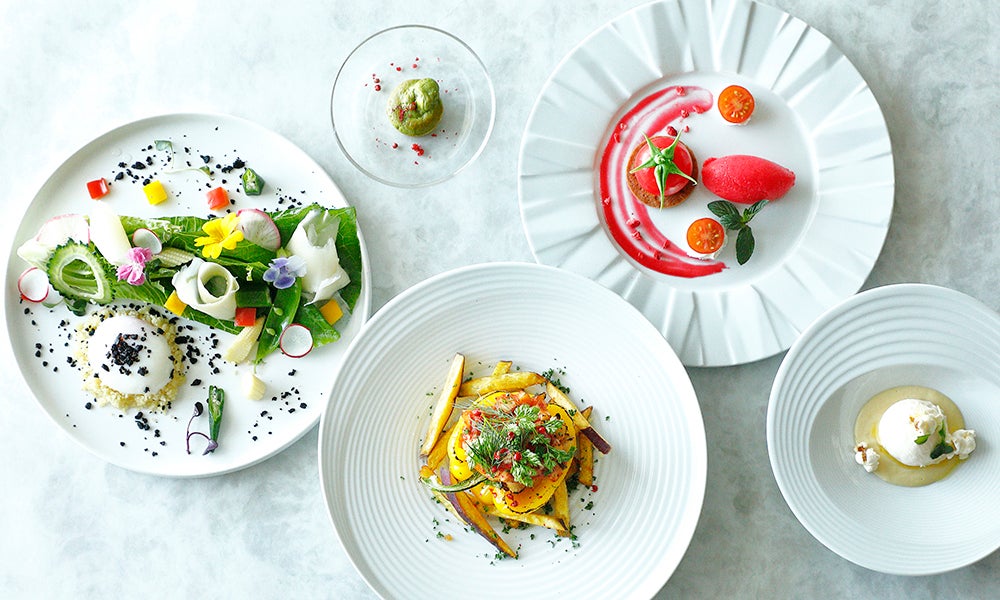 コースはすべて野菜のみで構成され、季節ごとに顔ぶれが異なる野菜は、それぞれのおいしさと栄養価を最大限に引き出す調理法で提供している。