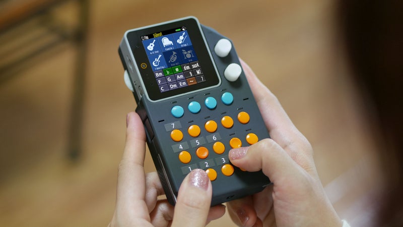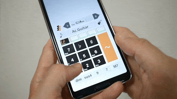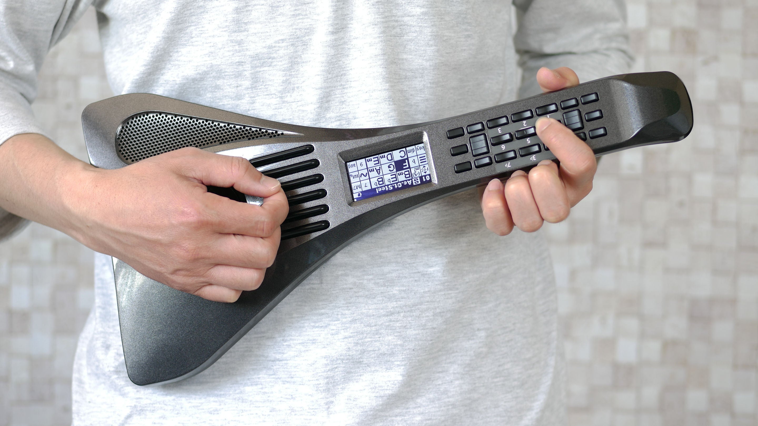 音楽が苦手な人もギターやピアノのようにコードが弾けるギター型の音楽ガジェット。