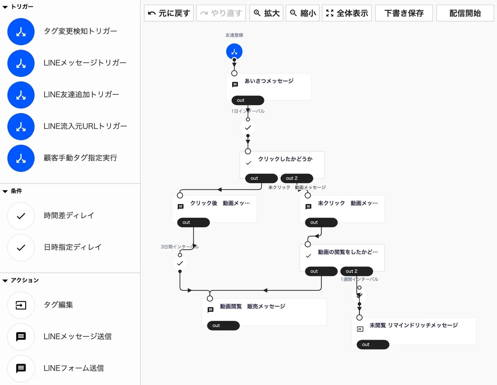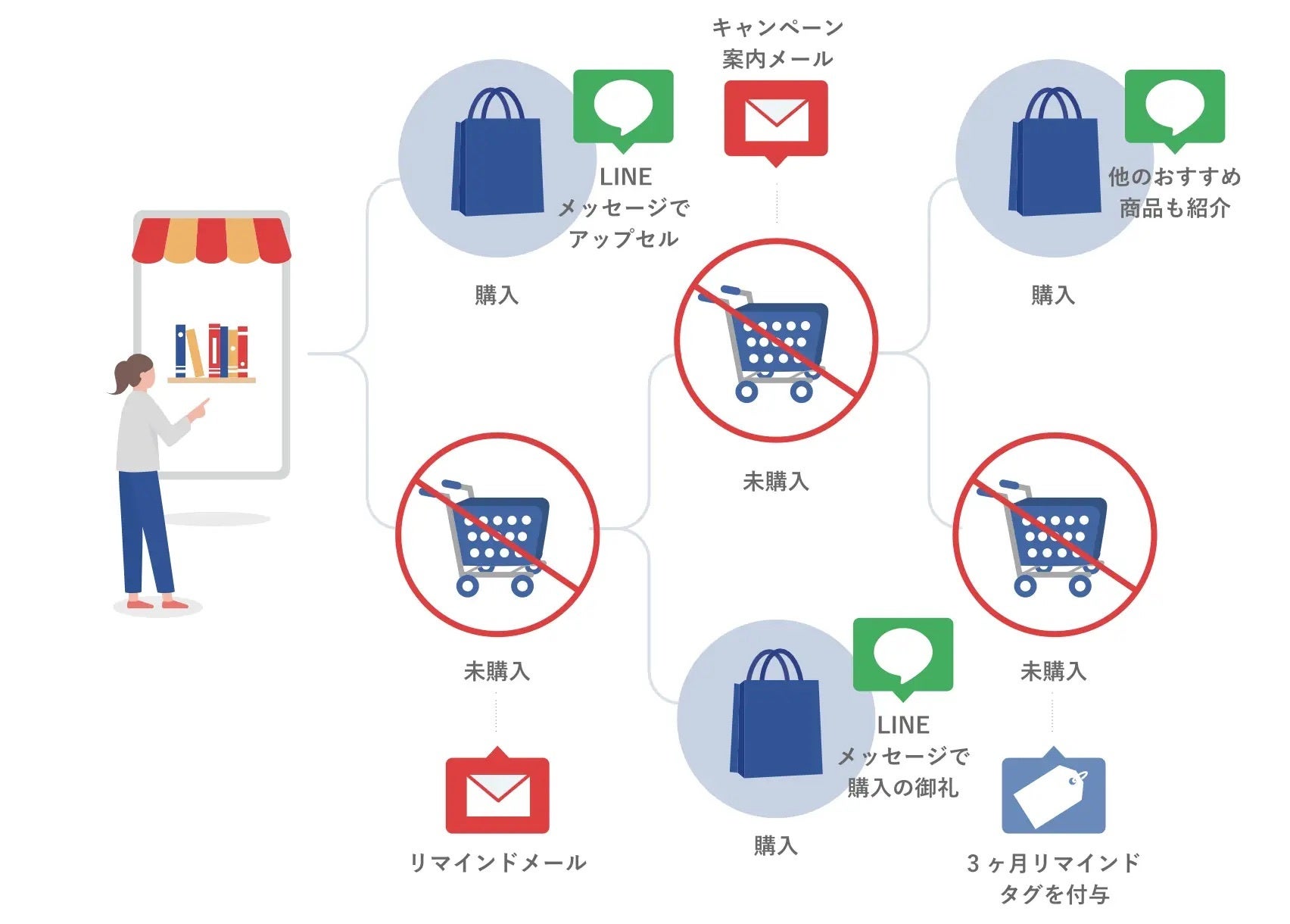 ターゲットやターゲットのニーズ/検討段階に合わせたメールやメッセージを自動で配信し、