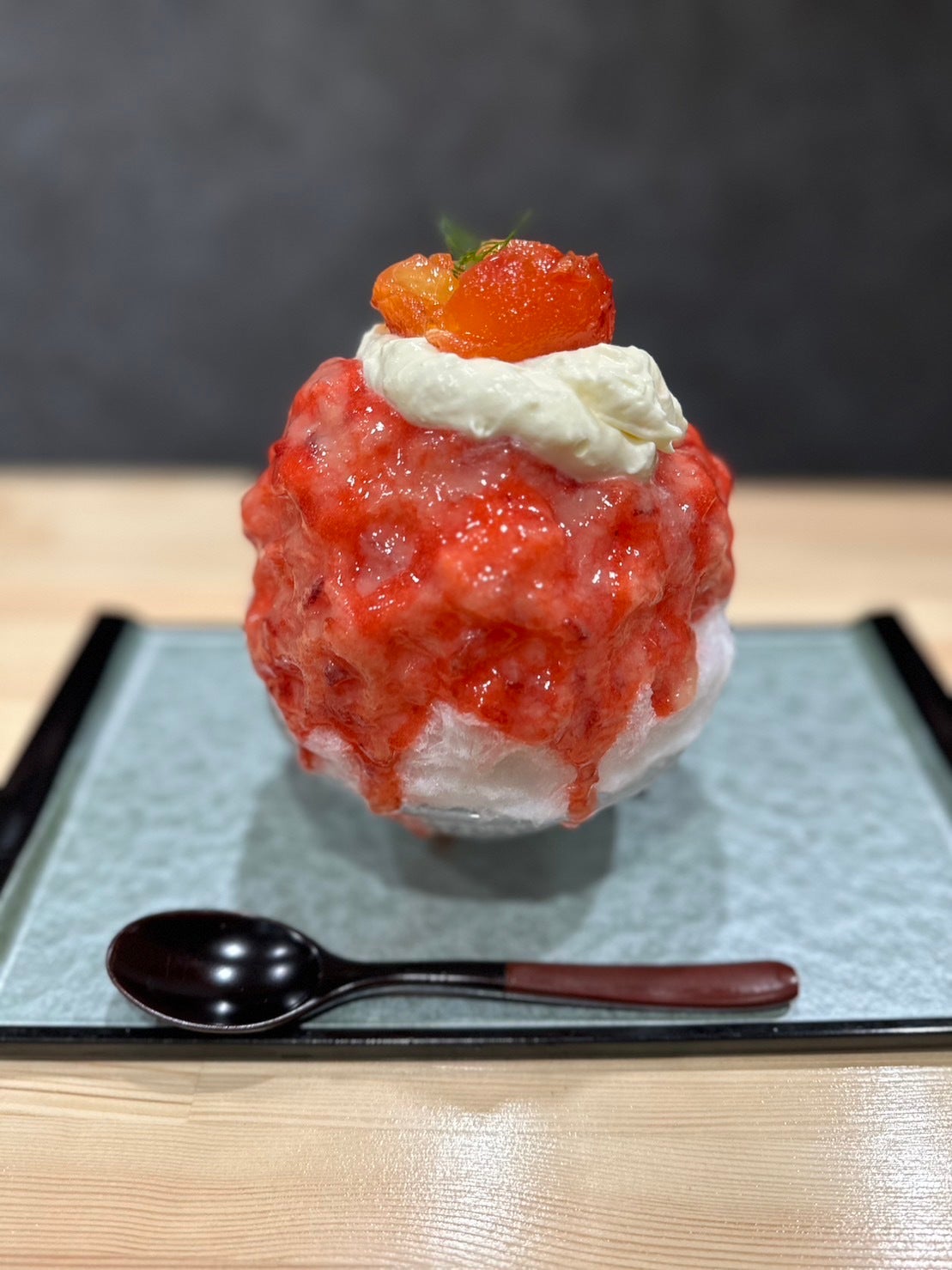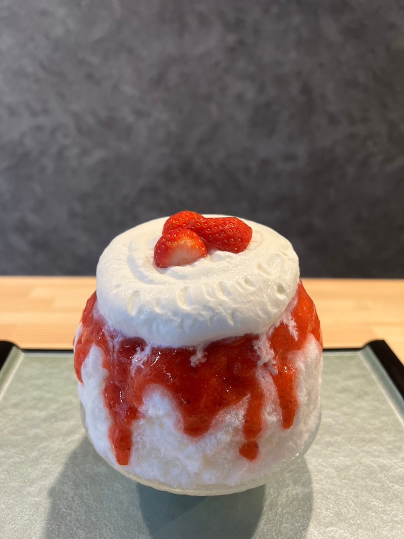 かき氷の定番「いちご」を生いちごソースとふわふわのクリームでより美味しく仕上げました。