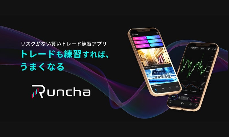 『Runcha』は、リスクなく本格的なトレードの練習ができる、デモトレードの進化版アプリです。過去約20年分のチャートデータを活用して、いつでも好きなときに、もう一度体験したい相場、経験したことのない大相場などをノーリスクで体験できます。