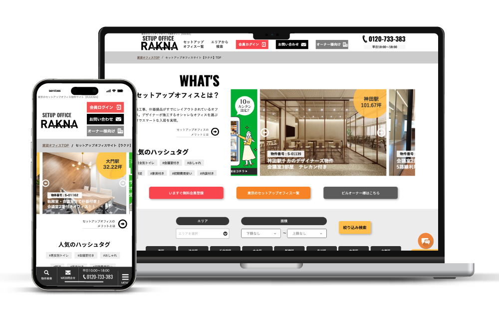 東京にある内装付きオフィス「セットアップオフィス」を検索できるサイトです。