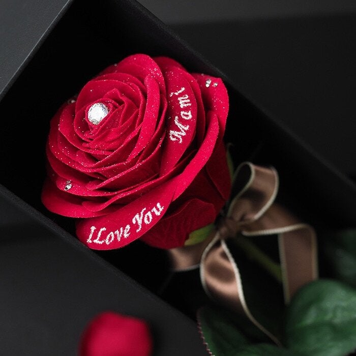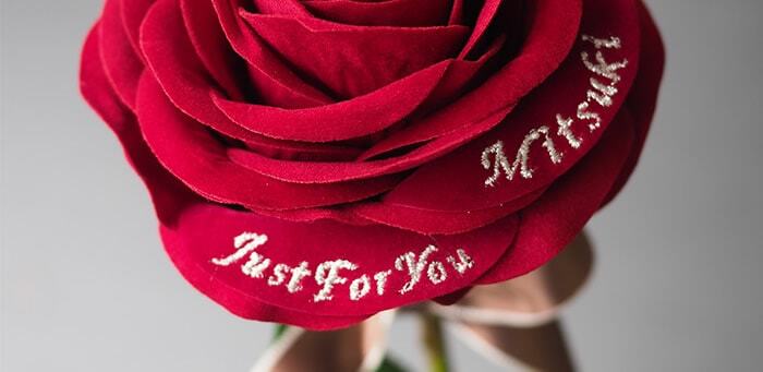 お手入れ不要でずっと咲き続ける「アートフラワー」(造花)でできたメリアルームオリジナルの一輪の赤いバラは、誕生日プレゼント、記念日、プロポーズ、ホワイトデー、クリスマスなど、どんな用途にもマッチします。花びらには贈る相手の名前やメッセージの刺繍入り。世界にひとつのオリジナルギフトをハンドメイドでお届けいたします。