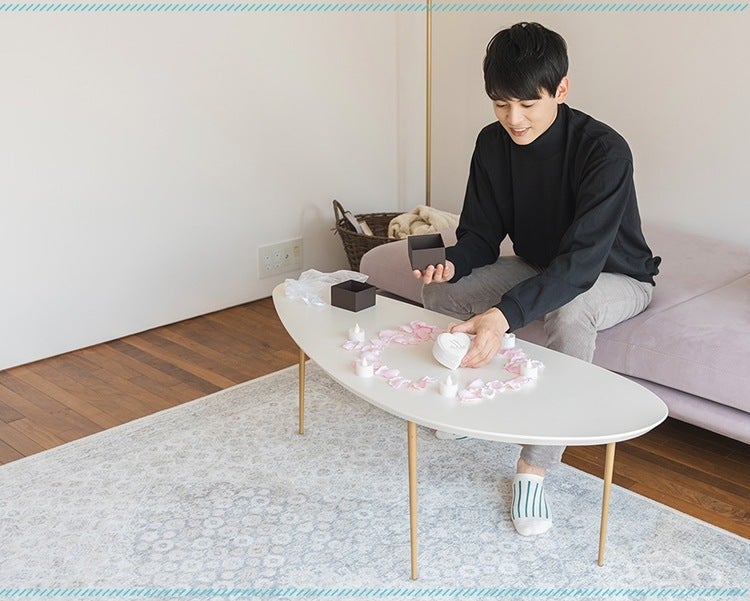 商品購入の前に、自宅でゆっくり試せる【サンプル商品の貸出しサービス】です。一生に一度のプロポーズ、喜んでもらいたい・失敗したくないと思う方は沢山います。そんな方のお悩みを解決するため誕生したのが、プロポーズ人気アイテムを自宅で試せる貸出しサービスです!実際に見て触って品質を確かめたり、プロポーズの演出を試して本番のイメージを膨らませることが出来ます。