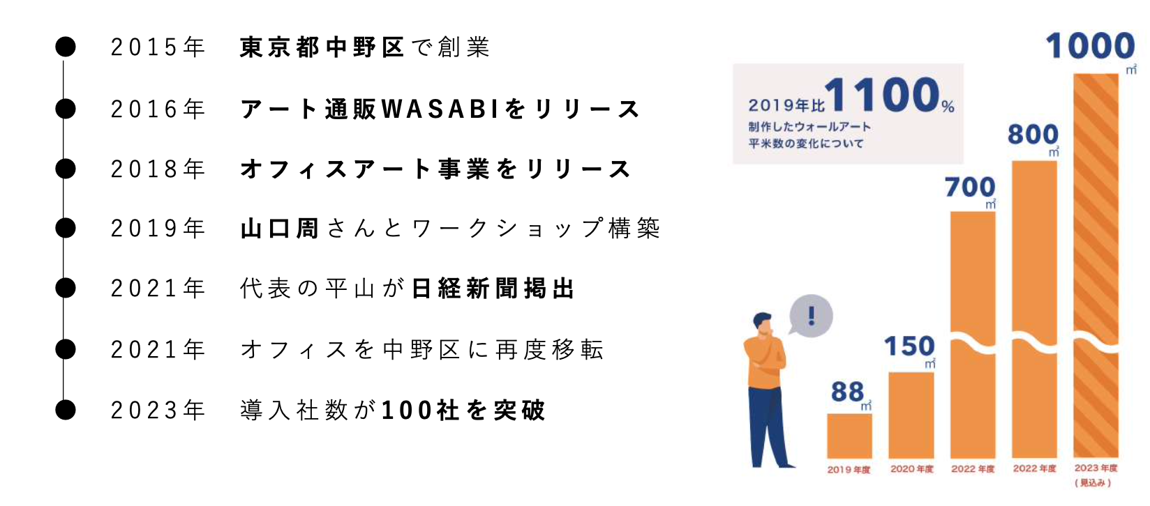 当時ほとんど市場が存在しなかったアートビジネスの領域に参入し、アートの通販事業「WASABI」や、オフィスにミューラルアートを導入をする「NOMAL ART COMPANY」をゼロから立ち上げた。現在ではアートを起点にしたワークショップやアート解説ツアーなど多様なビジネス機会を拡充し、アーティストとビジネスマンの接点を作ることに喜びを感じている。
