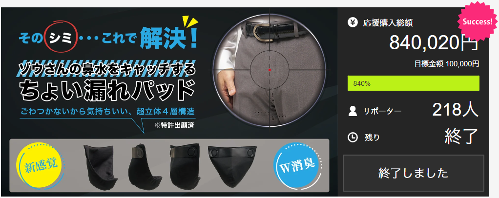 ・事業は衣料品製造業を営んでいるが、労働集約的な事業であるため賃加工に限界を感じており、”縫う”ことが出来る商品で収益の柱を作りたいとの思いから”縫う”ことを基本に様々なアイデア商品をクラウドファンディングにだしている。