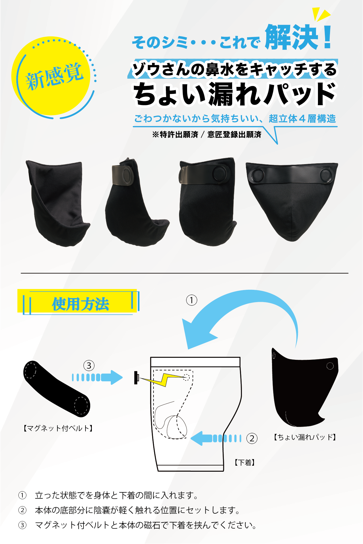 過去の経験から誕生した”ちょい漏れ”問題を解決する新感覚商品 男性が人知れず悩んでいる問題を解決する【ちょい漏れパッド】の開発秘話