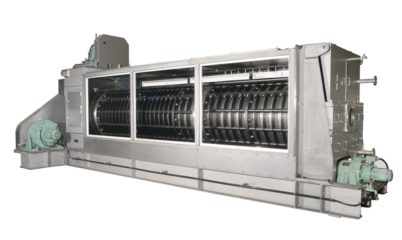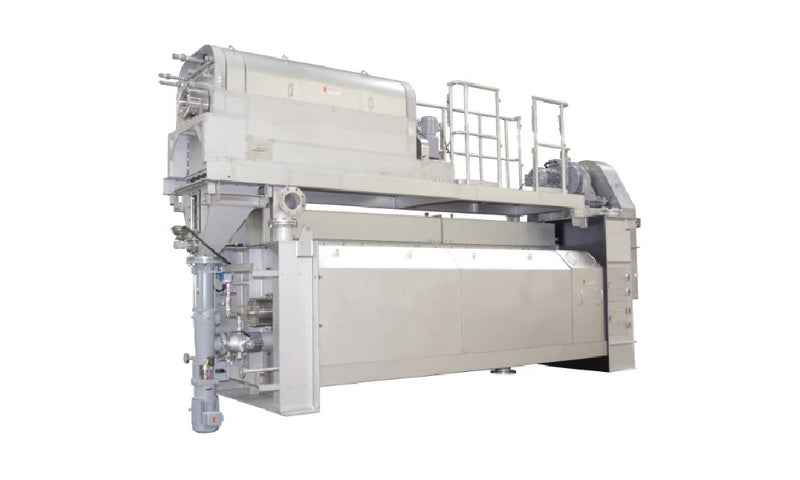 濃縮部と脱水部をハイブリッドシステム化した「ISGK型 圧入式スクリュープレス脱水機」現在の主力機種。
