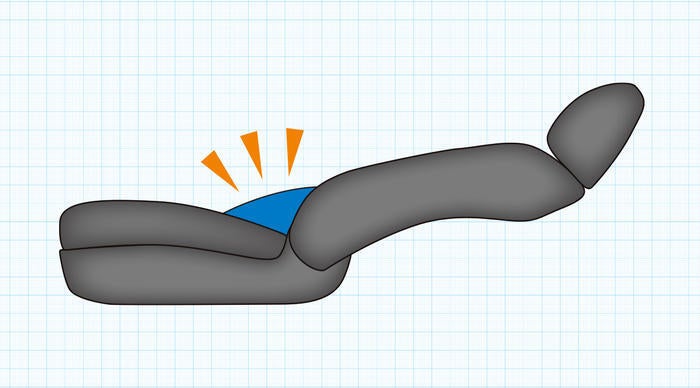 シートを倒した際のシートの形状に合わせて設計された低反発素材のクッションがシートと体にしっかりフィットするから良質な休息を得られ二次疲労を防ぎます。※意匠権登録済み