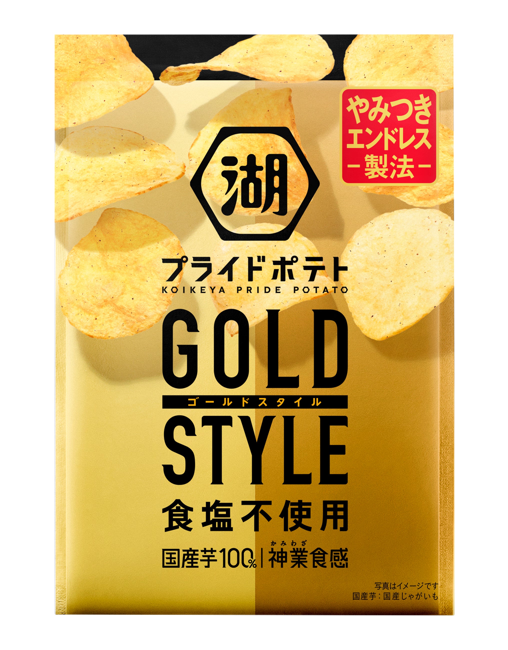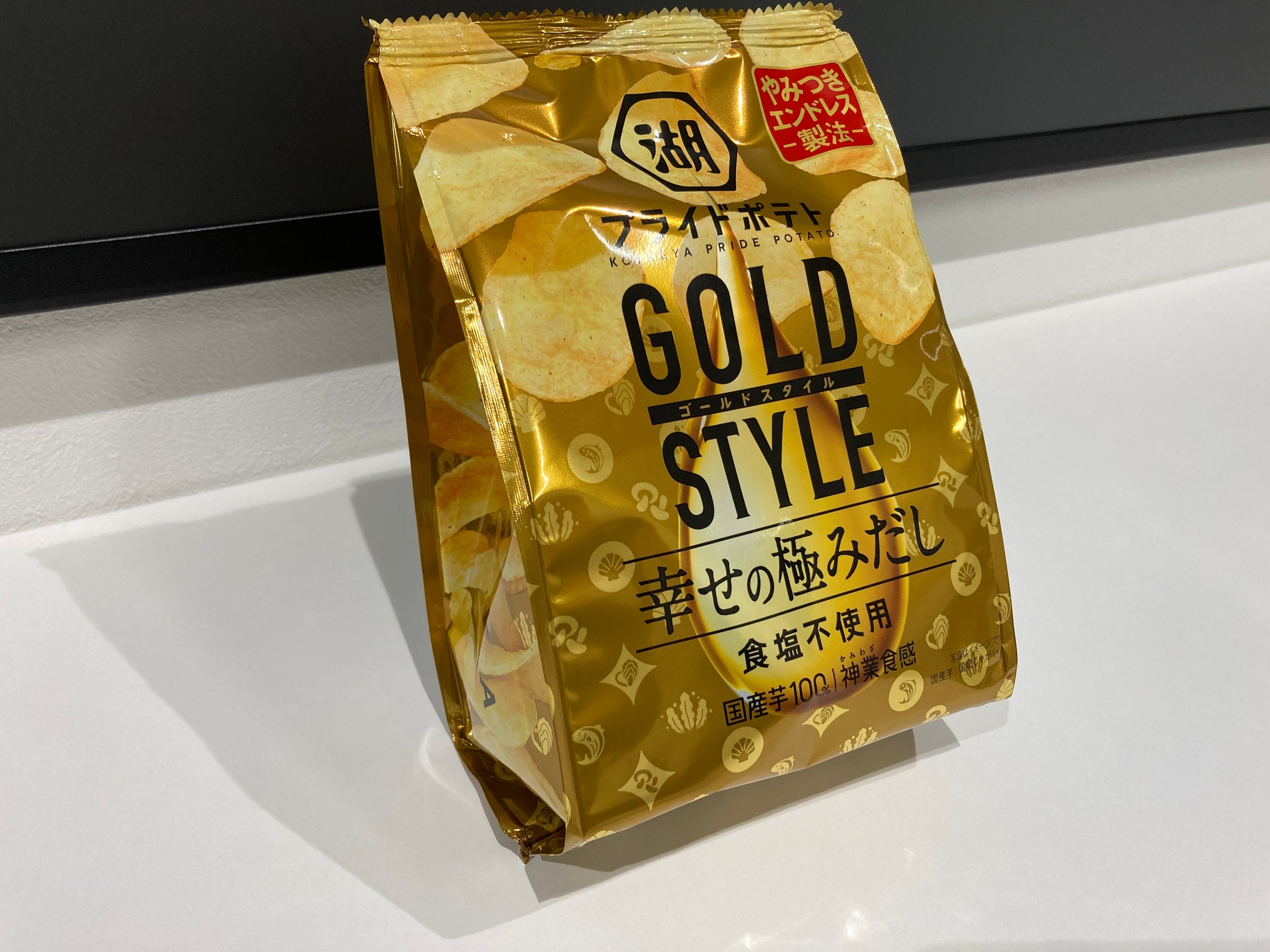 商品名/内容量:「湖池屋プライドポテト GOLD STYLE 幸せの極みだし 食塩不使用」/55g