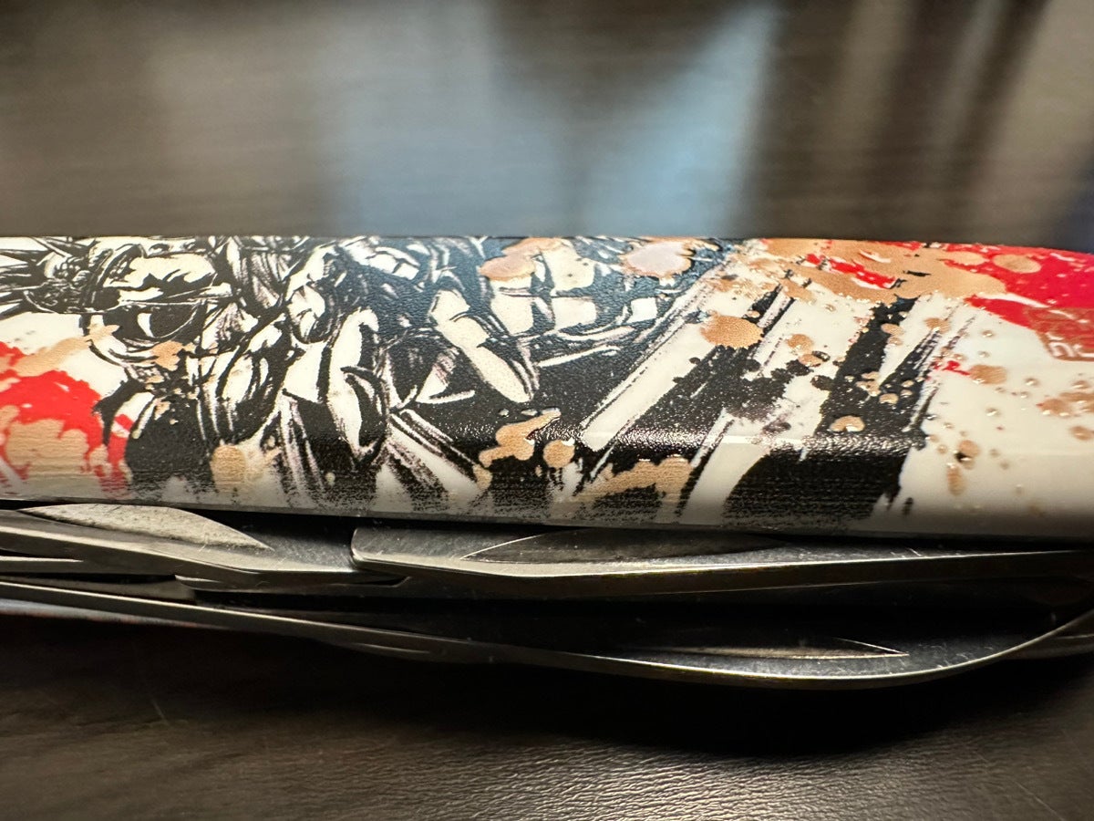 「戦国魂×ビクトリノックス」でも戦国武将の描きおろしを手掛けていた、墨絵師「御歌頭」氏による描きおろしのケンシロウを人気のマルチツール「クライマー」に使用!