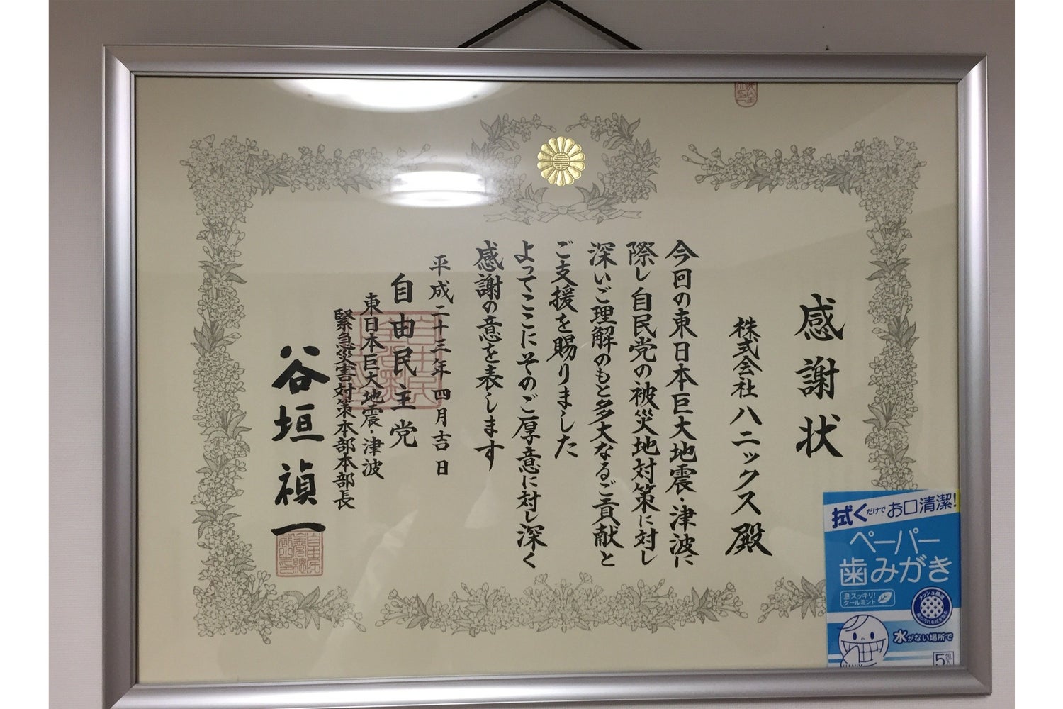 東日本大震災や豪雨災害の際、たびたび寄贈した実績があります。入れ歯をご使用の方をはじめ、寝たきりの方にも使用できる点が評価されています。