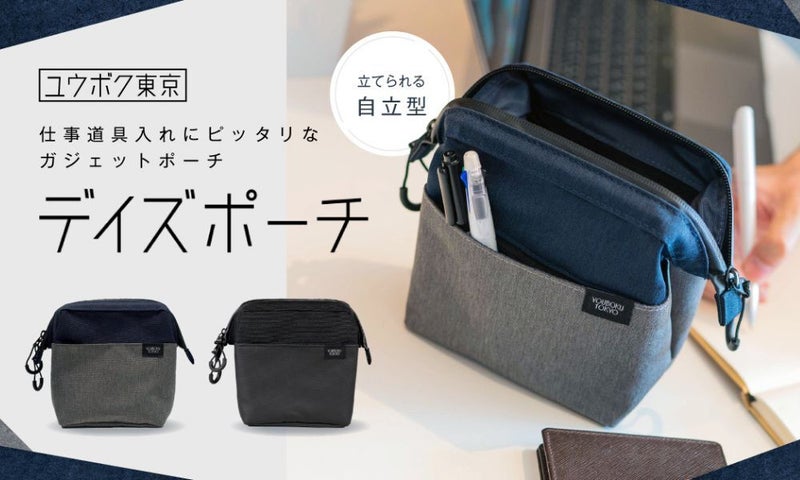 立てて使えて小分けに整理収納でき、自立できるガジェットポーチ「デイズポーチ」は、コンパクトなのに大容量で、仕事道具入れにおすすめです。
