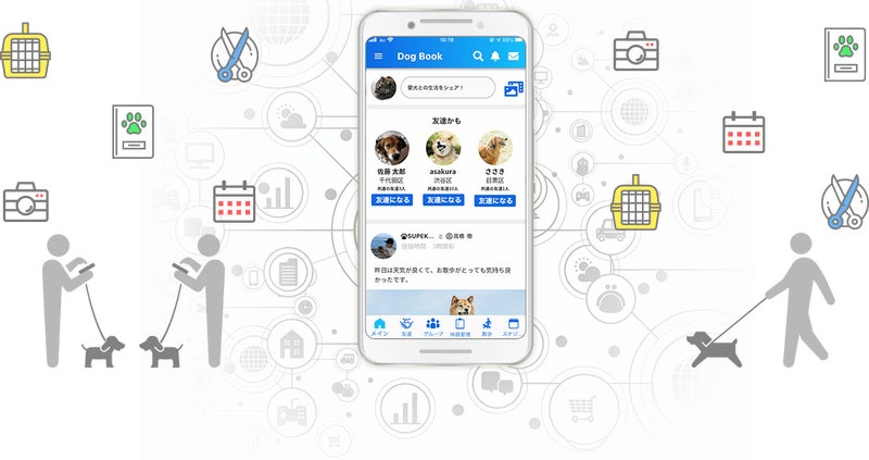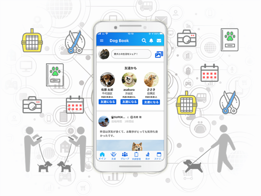 「Dog Book」は愛犬との充実したライフスタイルを実現するための様々な機能を備えた愛犬家専用アプリになっています。
