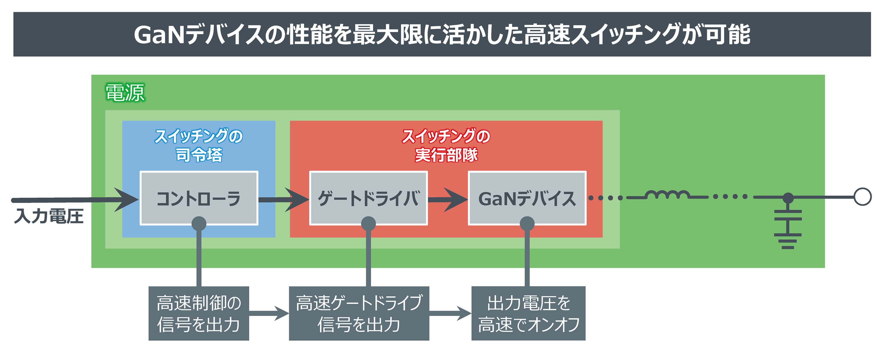 GaN(窒化ガリウム)は次世代のパワーデバイスとして期待されている化合物半導体の材料です。従来のシリコンデバイスと比較し、優れたスイッチング性能および高周波性能のため市場での採用が進んできています。