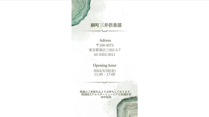 田中拓馬 個展 【3月28日 綱町三井倶楽部】開催直前インタビュー