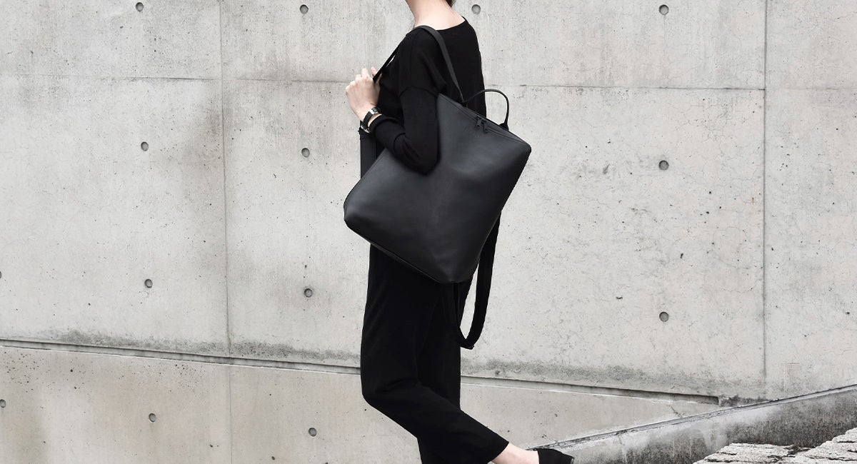 極限までシンプルにするため、つまみマチを採用し、ステッチを側面のライン一つに。