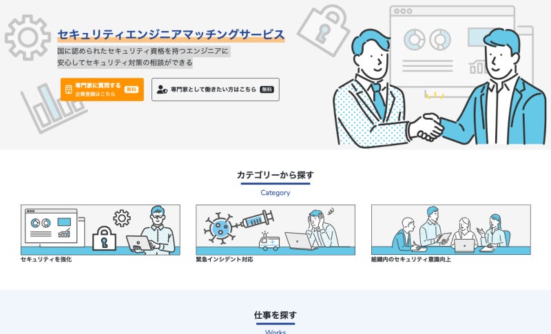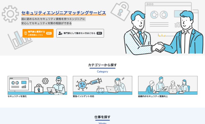 国に認められたセキュリティ資格を持つエンジニアに安⼼してセキュリティ対策の相談ができるセキュリティエンジニアマッチングサービス