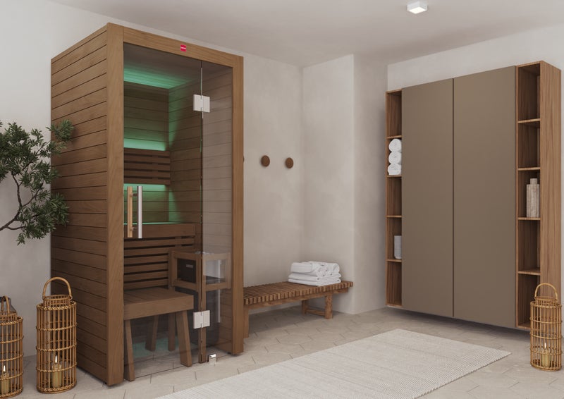 「かわいい」を意味するフィンランド語を冠した、最小モデルのハルビア製サウナルーム。日本の住宅サイズに合わせたハルビアジャパンオリジナル製品で、小型ながらロウリュもできるモデルです。