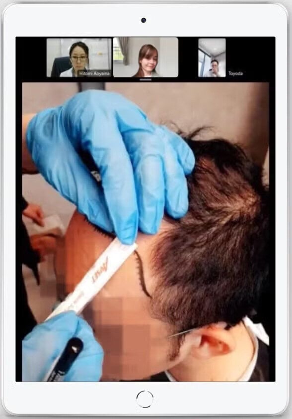 施術前のドクターヘアライン描きでは、オンラインで立合いし、一緒に最終確認させていただきます。
