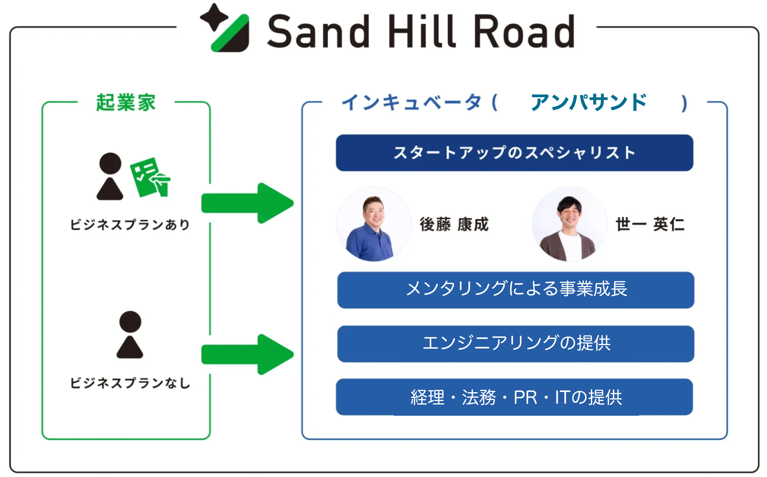 Sand Hill Roadは、アンパサンドが2023年6月に発表したEIR制度です。ビジネスプランを持つ起業家や、起業したいと考える経験豊富なビジネスパーソンを招き入れ、アンパサンドの経営リソースを用いて事業の設立および成長を支援します。起業家はPMF(プロダクト・マーケット・フィット: サービスや商品が特定の市場において適合している状態)の達成にて、キュービックグループ内の一企業としてさらなる発展に努めます。