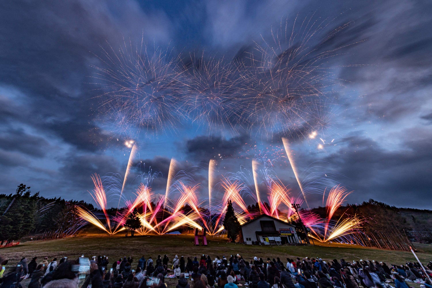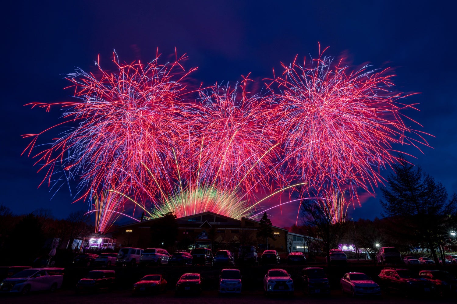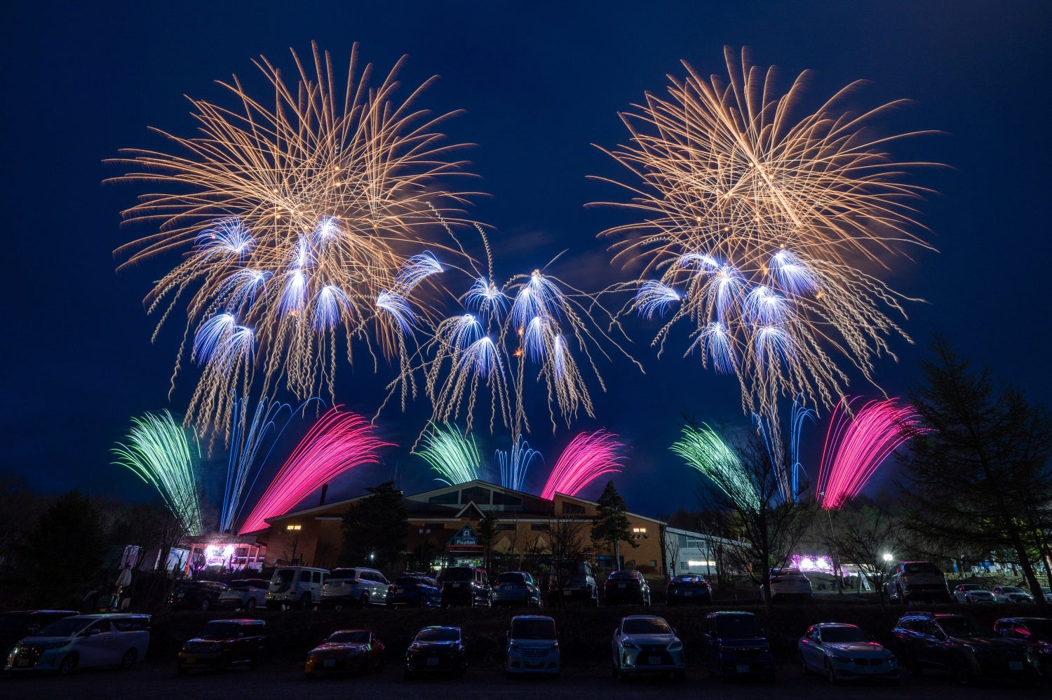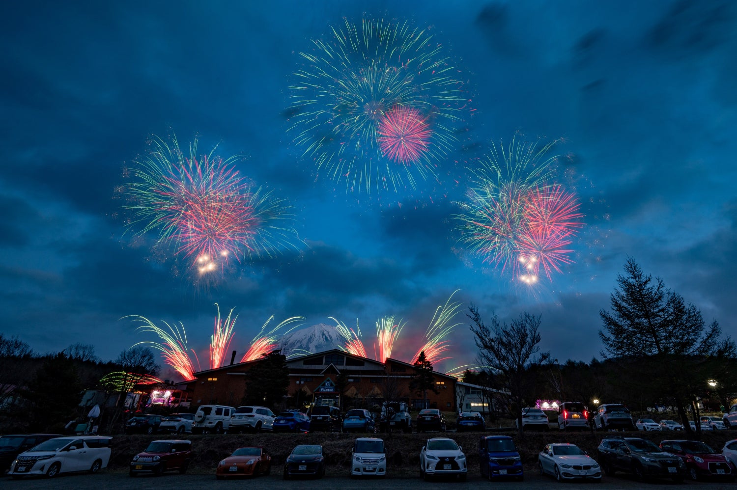 創業100年以上の日本の花火業界BIG4(紅屋青木煙火店、磯谷煙火店、齊木煙火本店、菊屋小幡花火店)が各々の伝統と技術の粋を極めた花火を披露。霊峰富士と匠の技が織成す比類なき絶景。美麗な尺玉(10号)の花火やスターマイン(連発花火)など多彩な花火が富士山を彩り、観客を魅了しました。2024年は、4月20日(土)に「ふじてんリゾート特設会場」にて開催する予定です。