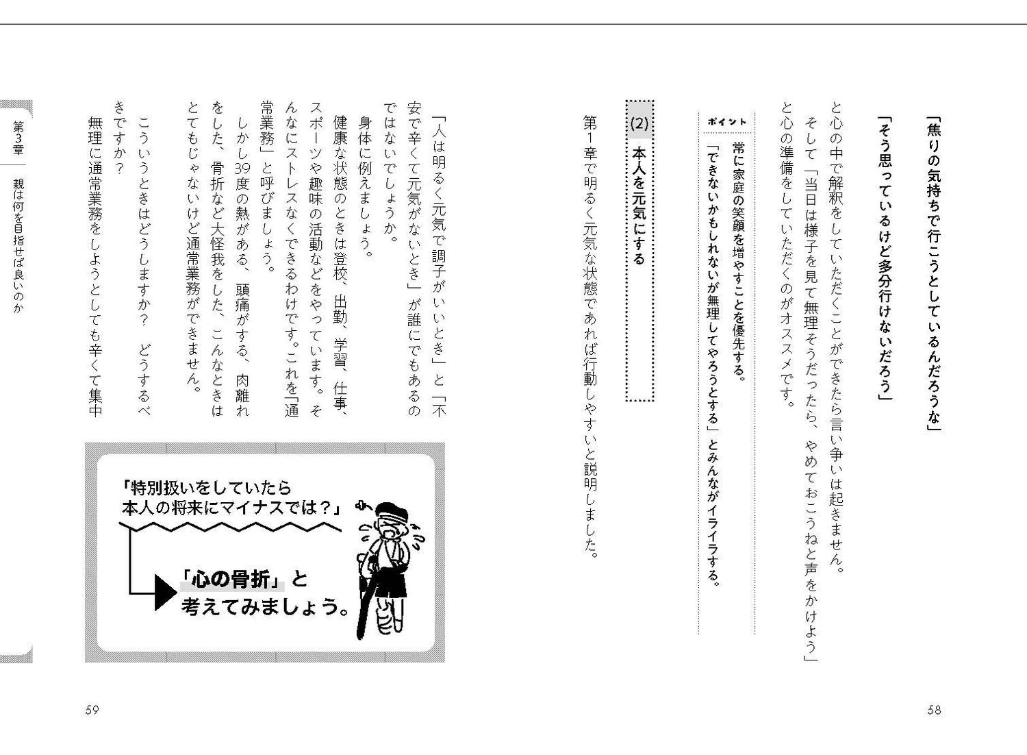 主な著書は『あなたの子どもはなぜ勉強しないのかーそのアドバイスが子どもをダメにするー』(学びリンク)、『あなたの子どもはなぜ勉強しないのかPART 2ー15 歳を過ぎたら犬家族から猫家族へー』(同)、『不登校・ひきこもりに効くブリーフセラピー』(日本評論社)共著、『逆転の家族面接』(同)共著など