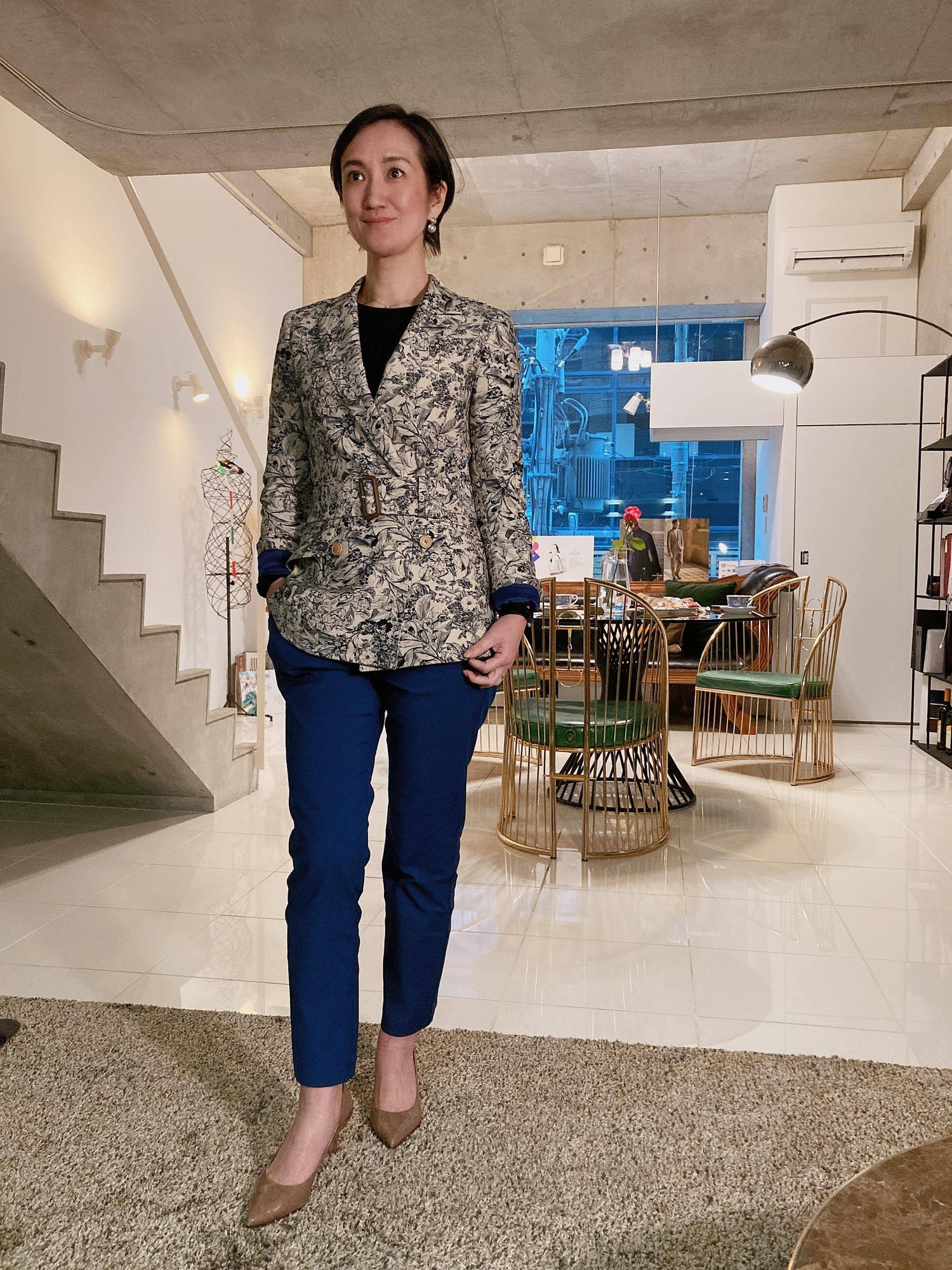 8割がカーテン生地。2割がストレッチ生地を使用したジャケットとなっており、女性の様々なシーンにご利用いただける商品バリエーションを取り揃えております。