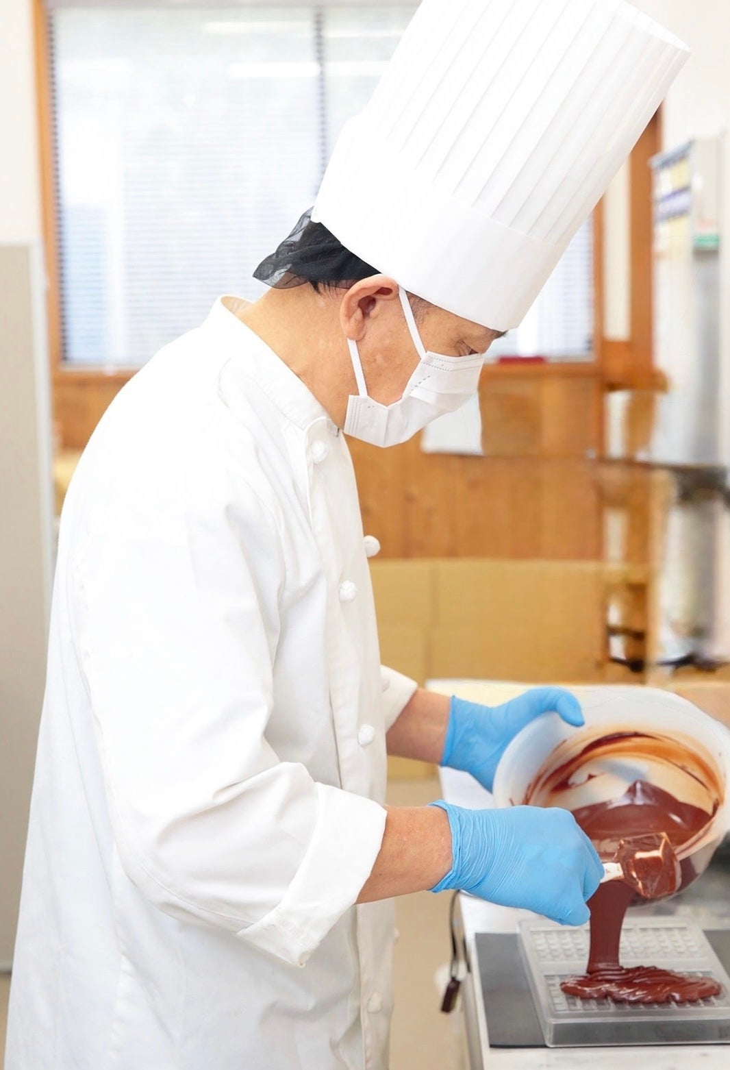 現在は、長年培った和菓子の繊細な技と伝統の知識をカカオの菓子作りと融合させ、新商品開発の核として日々、新たな美味しさを追求しています。