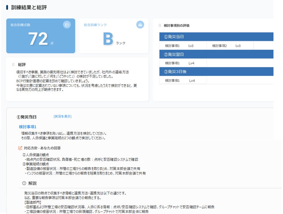 自社のBCPや危機対応マニュアルをAIが読み込むことで、自組織に最適なシナリオへアレンジ可能。多拠点の集合訓練にも、隙間時間を使った個人訓練にも対応できるフレキシブルなツールで、手間なく効果的な訓練の実施をサポート。