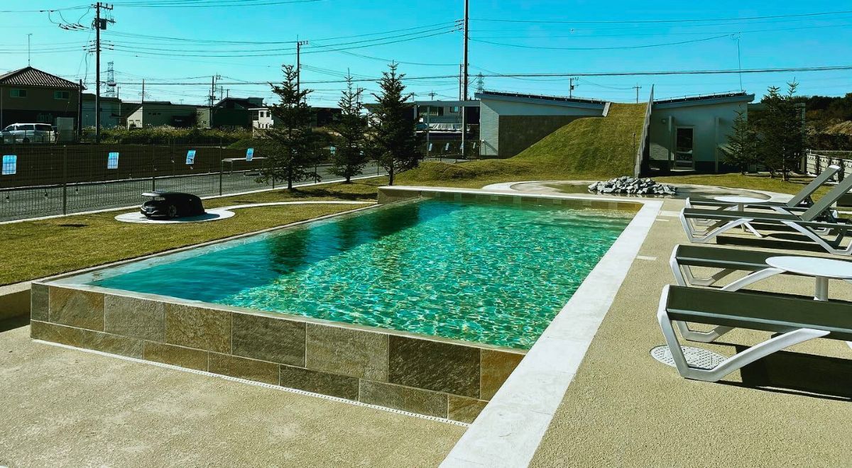 フランス マジライン社製のプールはコストパフォーマンスに優れています。PVCライナーの採用等で従来と比較して施工期間の短縮が可能、濾過システムにより年間の水の入れ替えは1〜2度です。