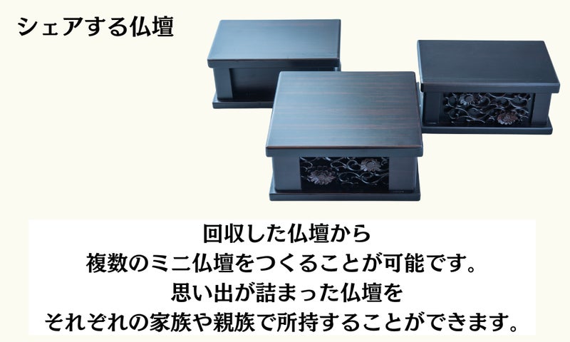 1つの仏壇から複数の仏壇を制作し、シェアすることが可能です。