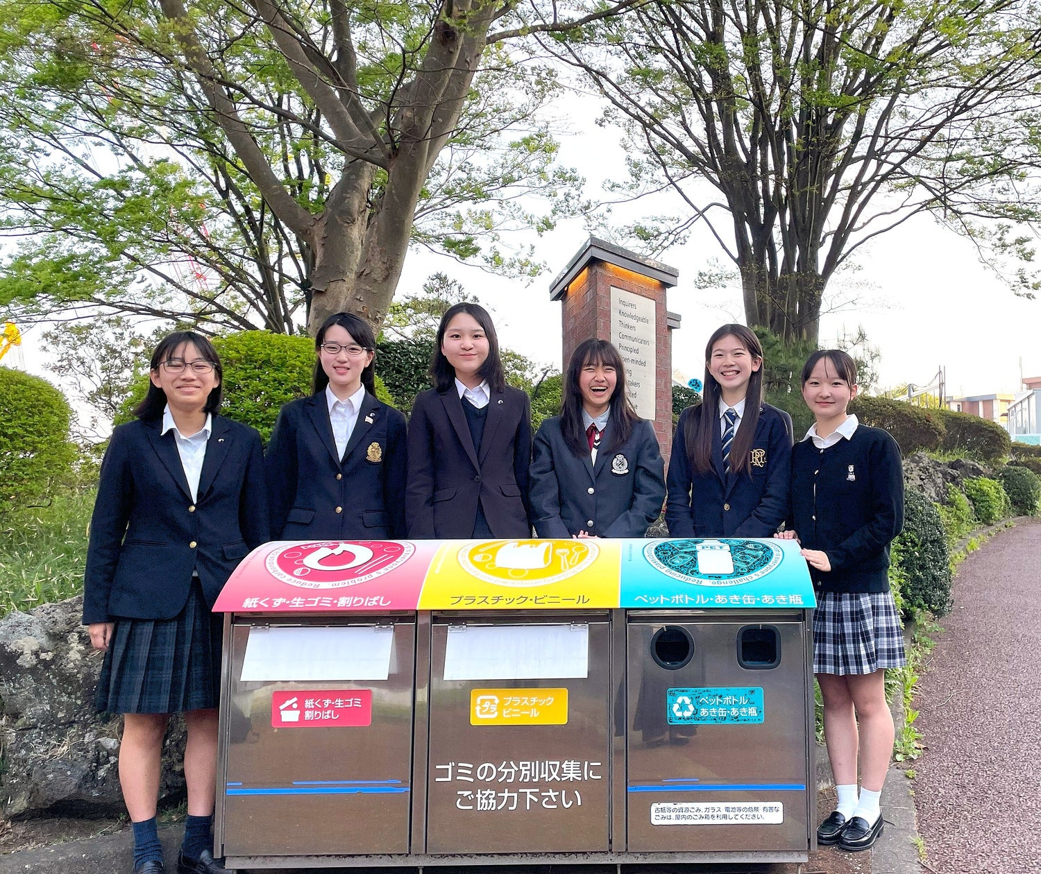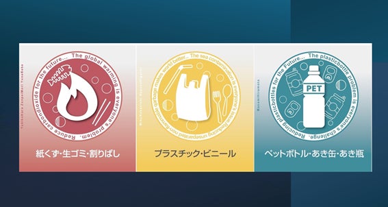 ゴミ分別収集の向上を目指し、わかりやすいデザイン・シールを中学生が作成した玉川学園