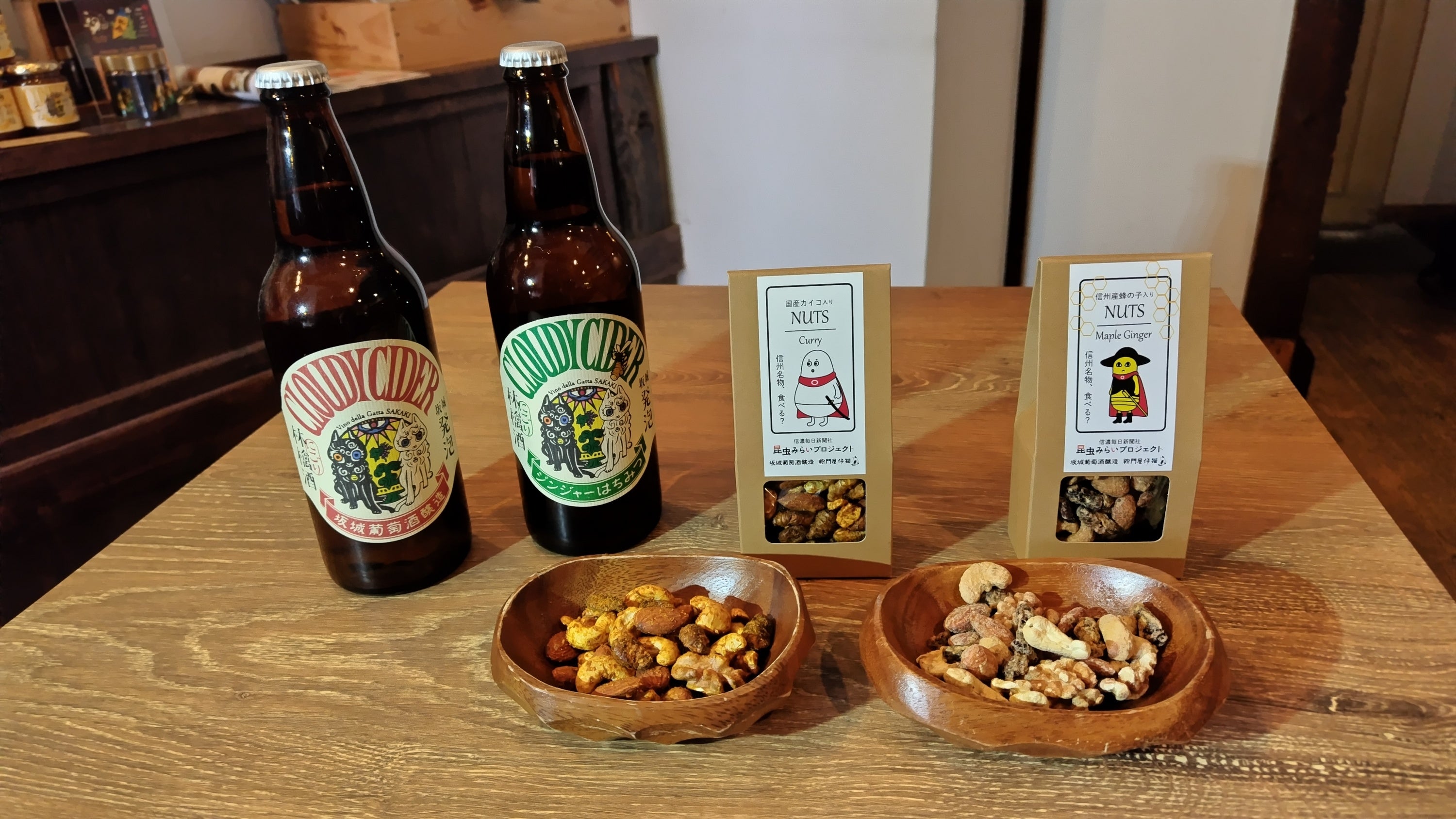 諏訪地方の製糸所のカイコを使用。蚕糸王国・信州を象徴する存在のカイコはオメガ3脂肪酸やタンパク質が豊富なSDGsな食材です。良質なローストナッツ特有の甘さと香ばしさ、爽やかなカレースパイスを利かせたエキゾチックな一品。日常のおやつとしてはもちろん、ビールやシードル、日本酒のお供として、また信州の手土産にもおすすめです。