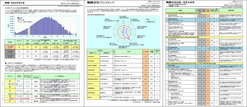 CRD会員(信用保証協会および金融機関)に提供しているMcSS(中小企業経営診断システム)のノウハウを活かした、士業等向けの新しい「財務診断ツール」です。 「分かりやすさ、使いやすさ」をコンセプトに、診断企業とのコミュニケーション、財務面での経営状況の把握にお役立ていただけるサービスです。