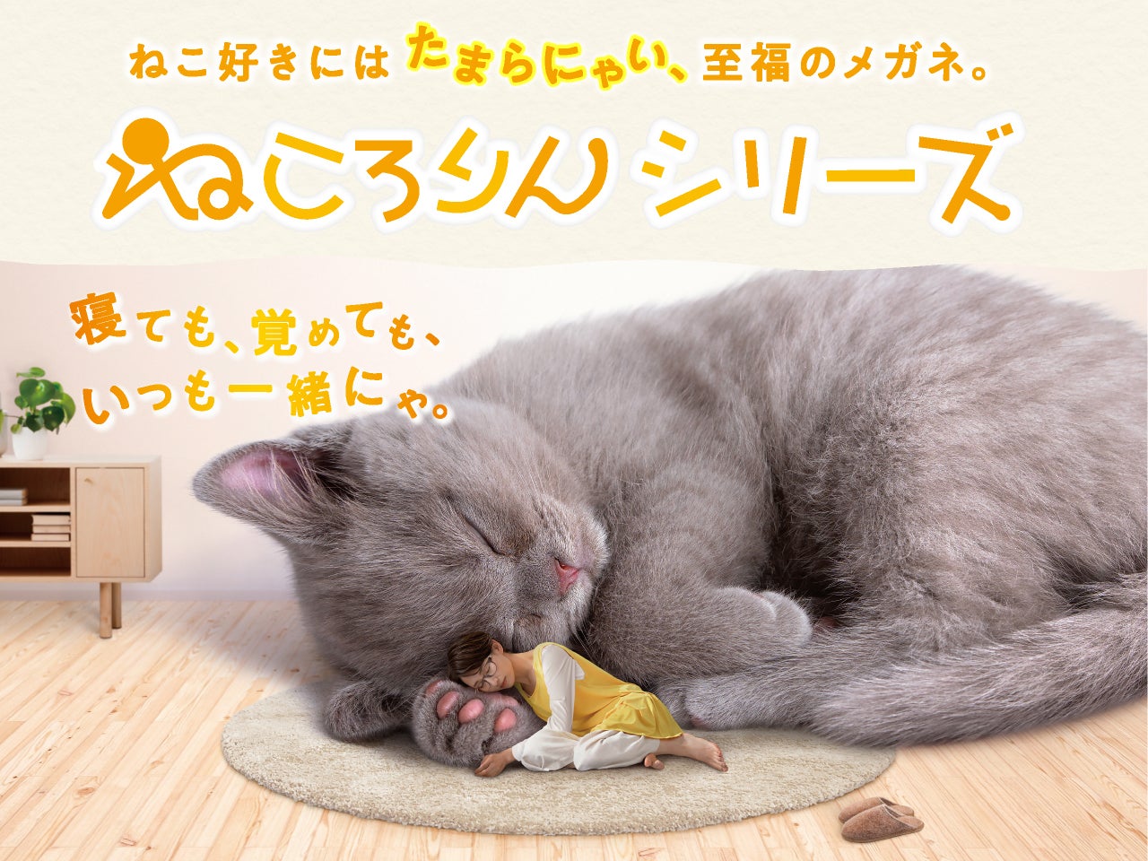 「ねこちゃんと、どんな時でも一緒にいたい。」そんな想いの込められた、ねこ好きの、ねこ好きによる、ねこ好きのためのメガネ『ねころりんシリーズ』。