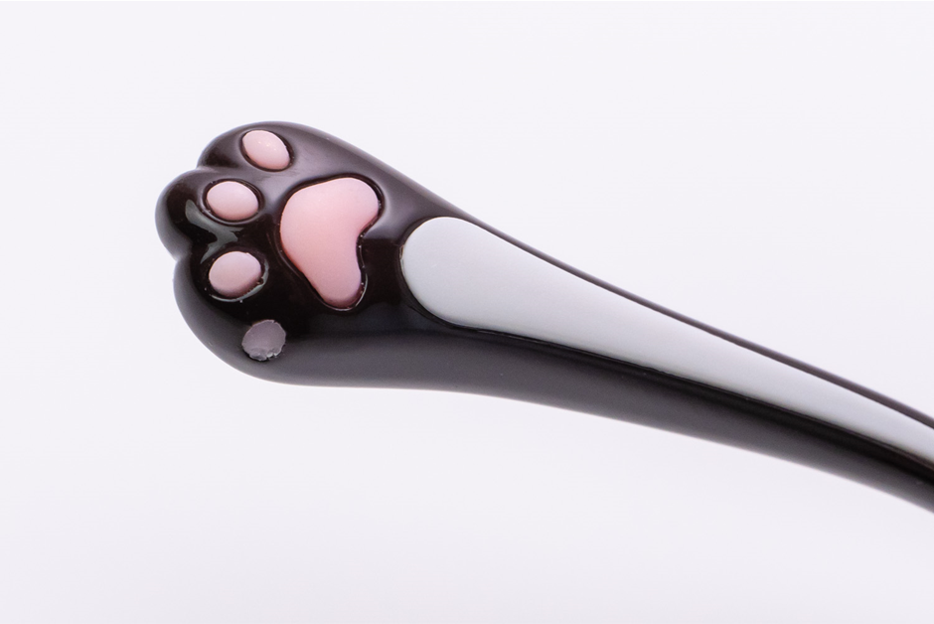 モダン(耳掛け部)にはプニプニ感がたまらない肉球パーツを使用。いつでも“ねこ”を感じていられる12種類のラインナップと、うっかり寝落ちしても壊れにくい軽量弾性樹脂素材(※続・ねころりんNE-2001において)もポイント。