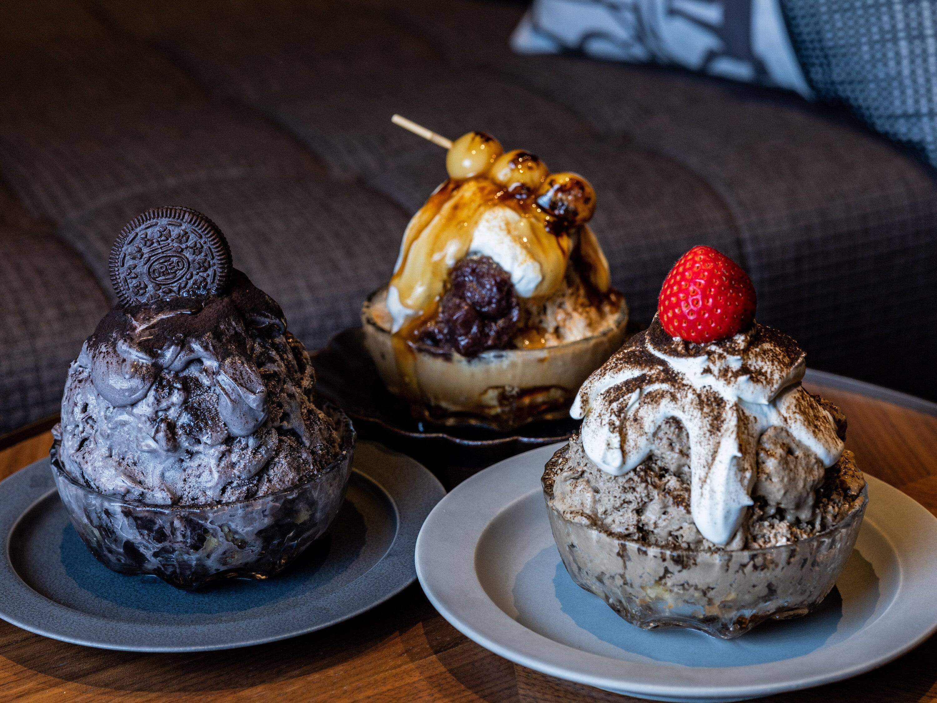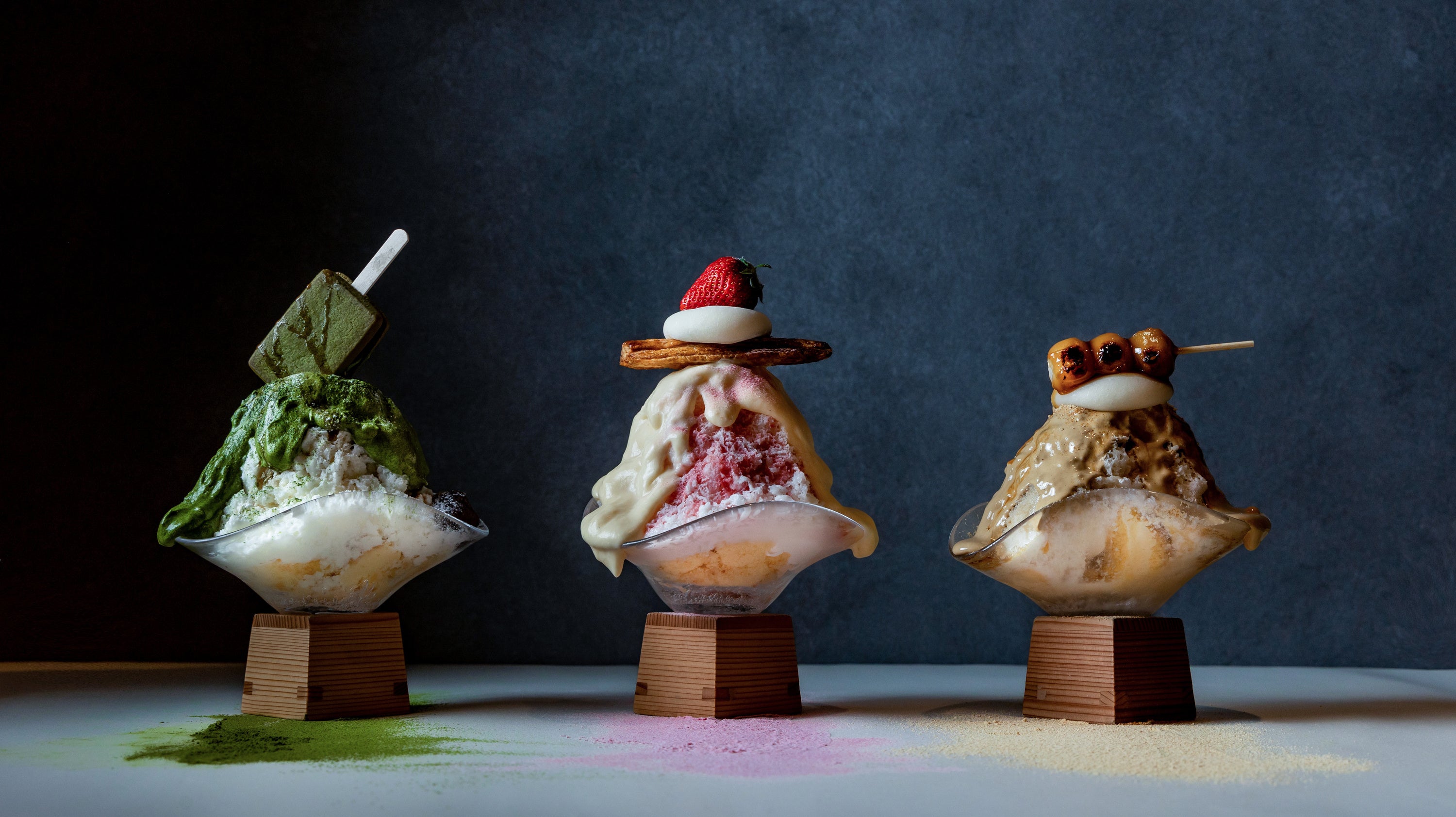 【内容】エスプーマ大福かき氷3種:「苺大福かき氷」「抹茶大福かき氷」「黒蜜大福かき氷」
