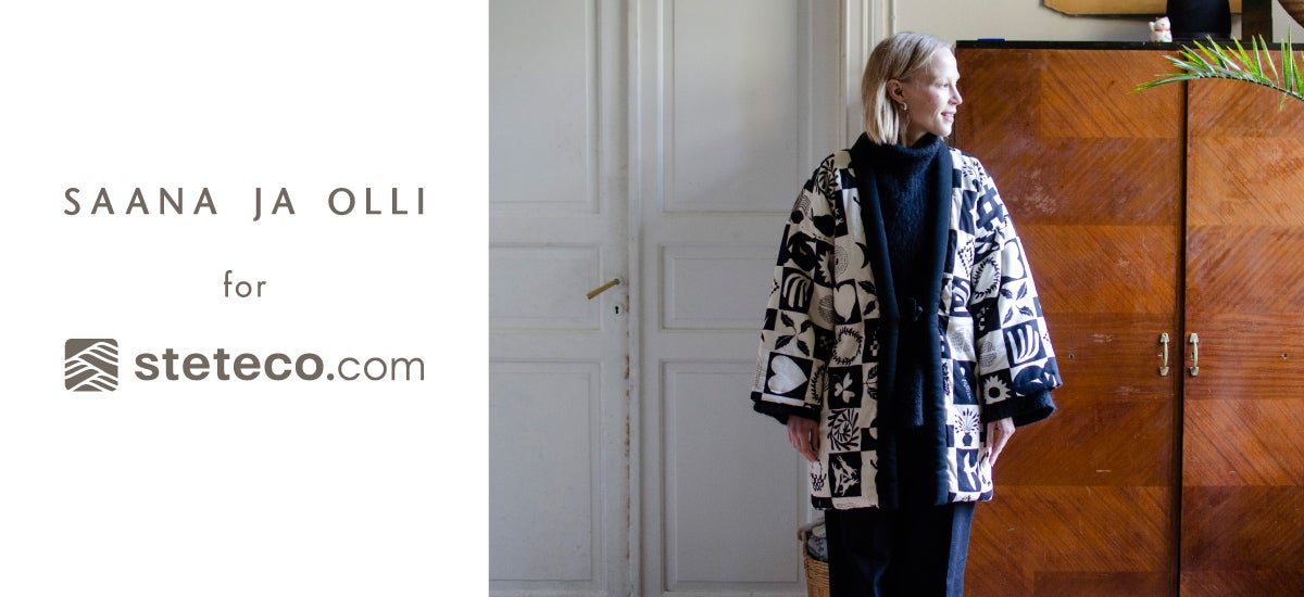 北欧フィンランドの古都トゥルクを拠点に活動するデザインスタジオ「Saana ja Olli(サーナ・ヤ・オッリ)」とのコラボレーションでは、ステテコドットコムの秋冬商品である「おふとんパジャマ」と「半纏」に、彼らの独創的なグラフィックデザインを融合させました。