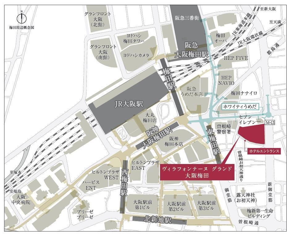2022年8月開業、関西圏初のヴィラフォンテーヌ“グランド”を冠したホテル。大阪の経済・商業の中心部である梅田地区に所在し、JR線「大阪」駅、阪急線、阪神本線「大阪梅田」駅、Osaka Metro谷町線「東梅田」駅、御堂筋線「梅田」駅など各駅が徒歩圏内に位置する交通利便性のほか、和モダンを基調とした内装や客室、美と健康をテーマとした和食ブッフェレストランがある。2023年8月に、約800㎡の複合型SPA『SPA 爐 -IRORI- by 泉天空の湯』がホテル内に誕生。