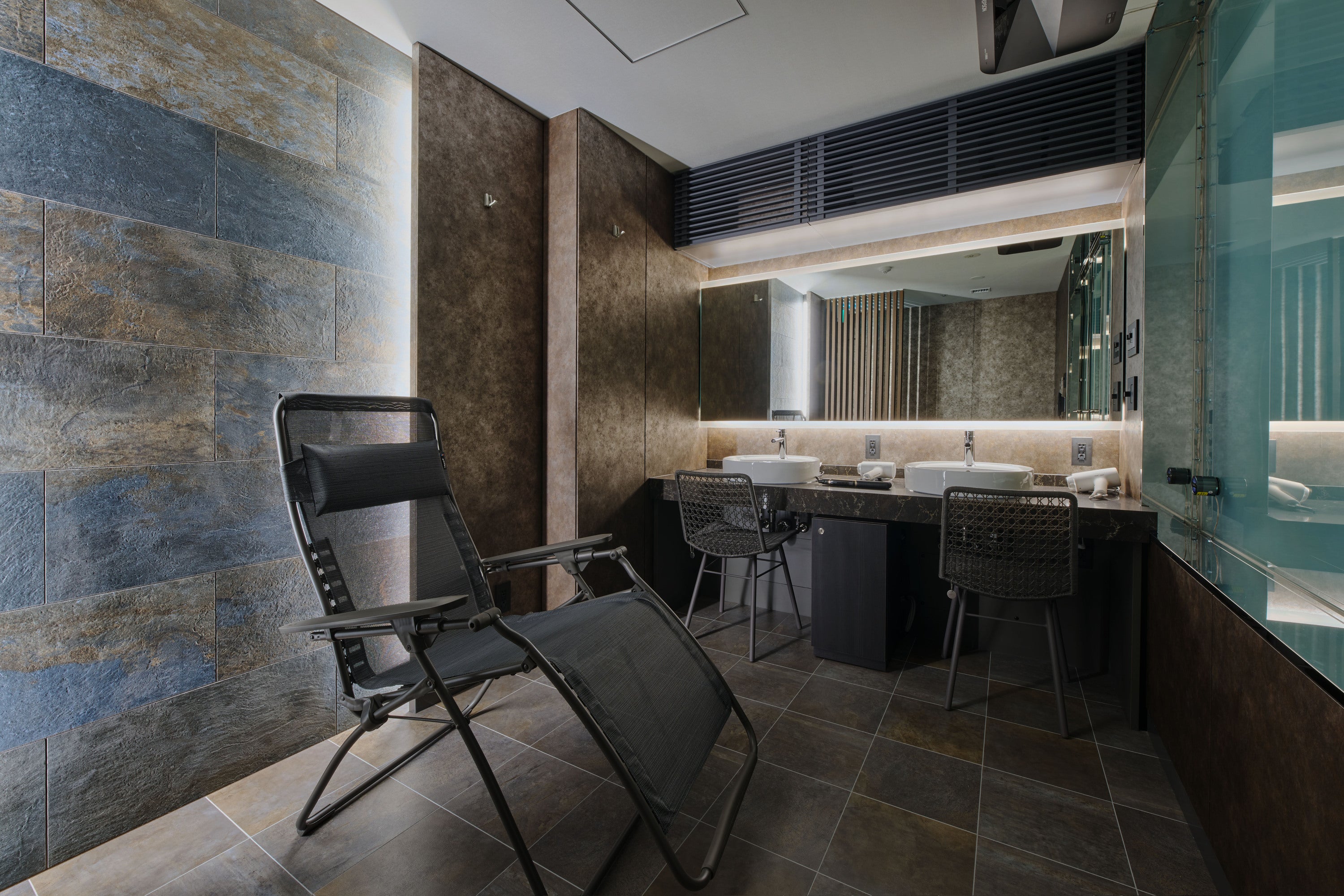 『SPA 爐 –IRORI- by 泉天空の湯』の「爐(いろり)」は古来から伝わる「囲炉裏 (いろり) 」をイメージして名付けられました。SPA 爐には、火をくべて暖をとるようにパートナーとコミュニケーションを取る場所、全ての人が安らぐ場所になるようにという想いが込められています。約800㎡に広がる空間は、和モダンを基調としたスタイリッシュと静寂を共存させた設えで統一され、心身の自分磨きに没入できる環境をご用意しています。
