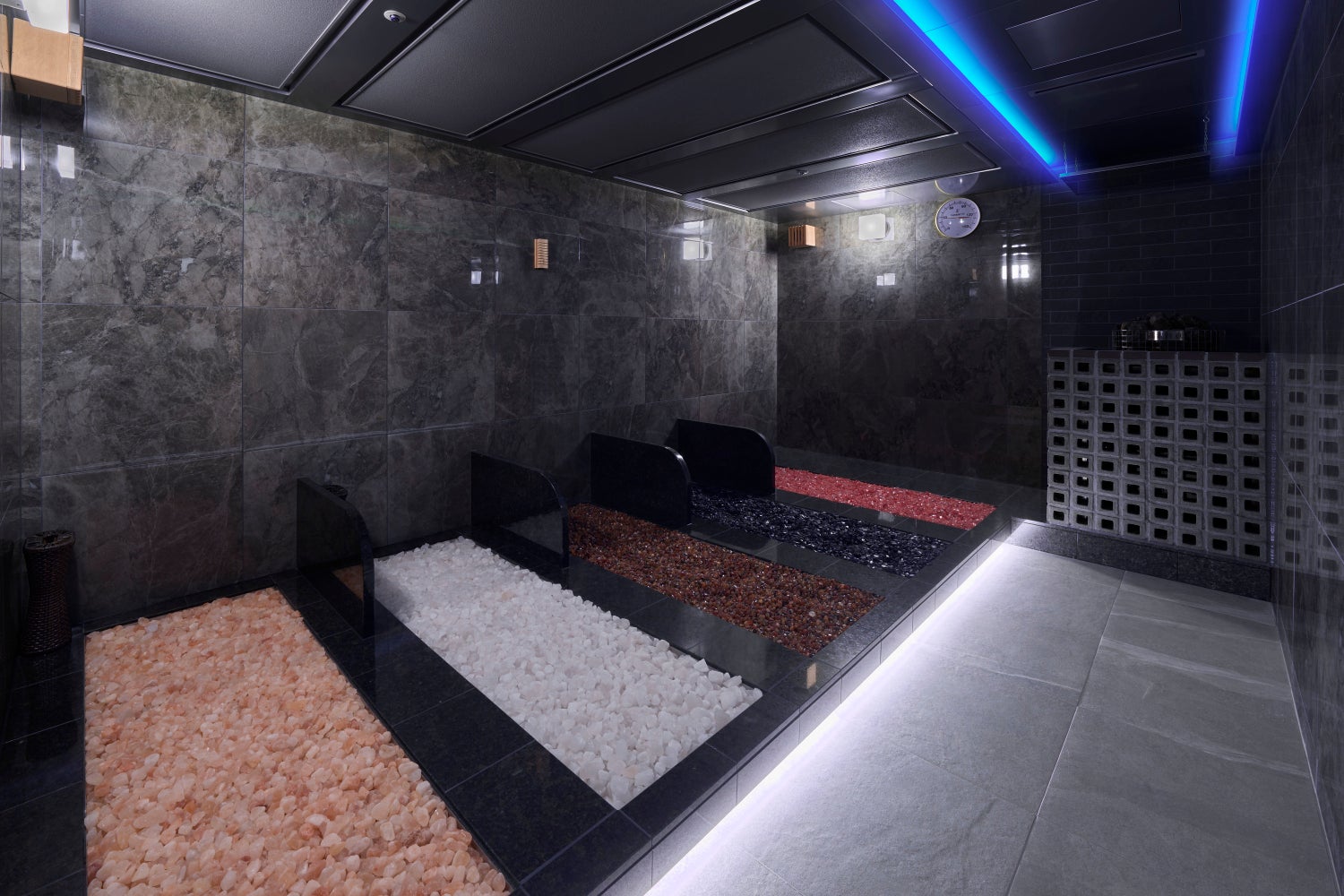 施設内には大浴場、岩盤浴、プライベートバス&サウナ、プライベートサウナ、酵素浴、ザ・ビューティースイートなど癒しのコンテンツを複合的にご用意、美と健康のウェルビーイングを実現します。