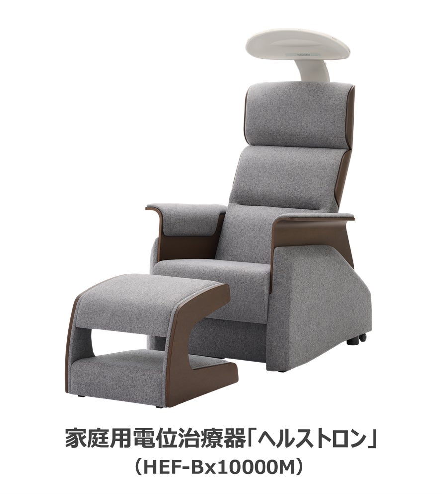 現在、「ヘルストロン」は治療電圧が高く短時間でより効果的に電界を浴びる「椅子式タイプ」、治療電圧が低く横になって長時間使用することで電界をジワジワ浴びる「ベッド・布団式タイプ」を販売しています。