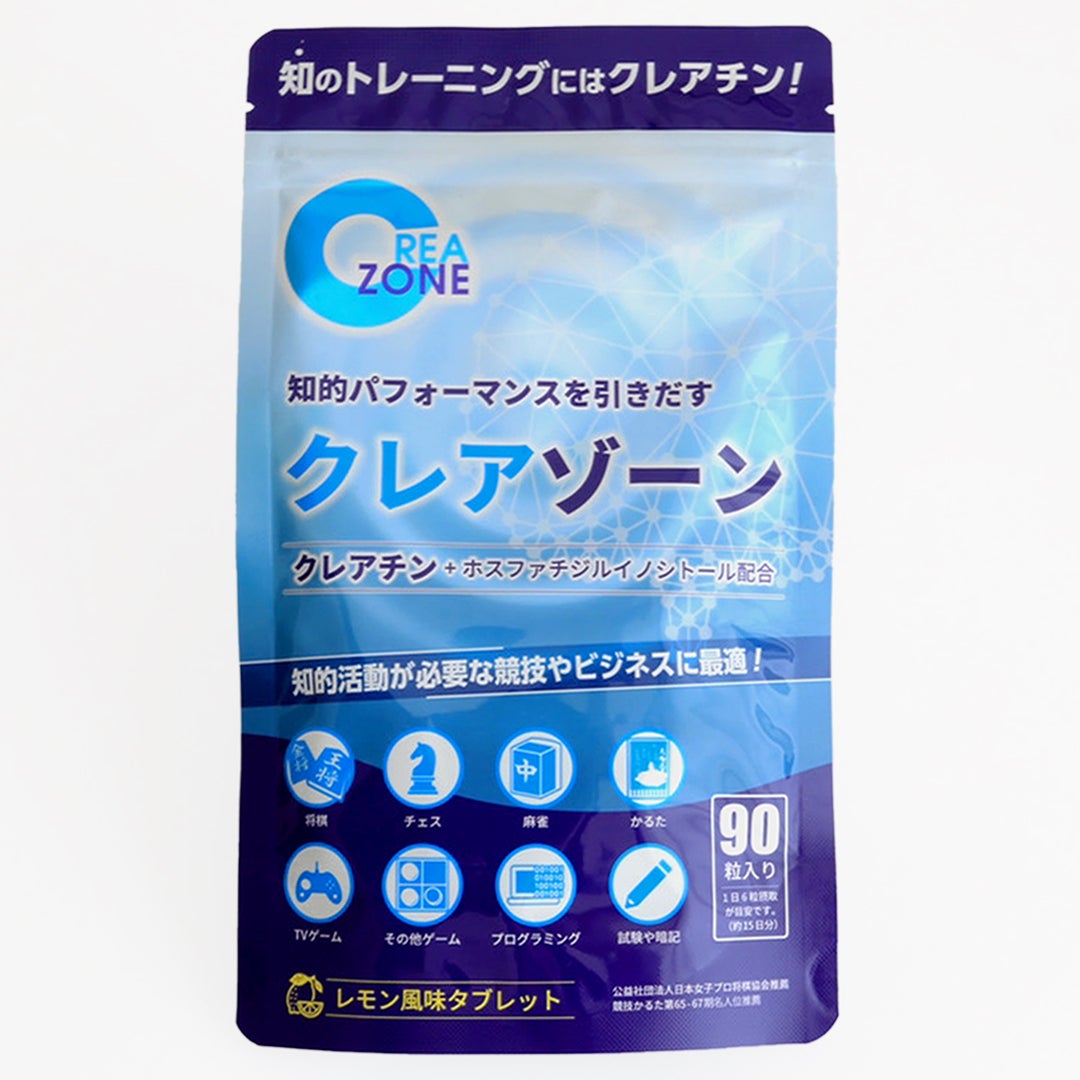 クレアチンはアスリートやボディビルダーから長年愛用されている、身体作りやパフォーマンスを発揮するために使用されているサプリメントです。近年では、e-スポーツプレイヤーや将棋、囲碁、麻雀、競技かるたなどのマインドスポーツの分野でもコンディション維持の観点から注目を集めています。 クレアゾーンはクレアチンを配合した、エネルギーの供給をサポートを受けながらパフォーマンスを発揮したい方々に届ける新しいサプリメントです。レモン風味のタブレットを6粒摂取することでクレアチン3gをチャージできます。