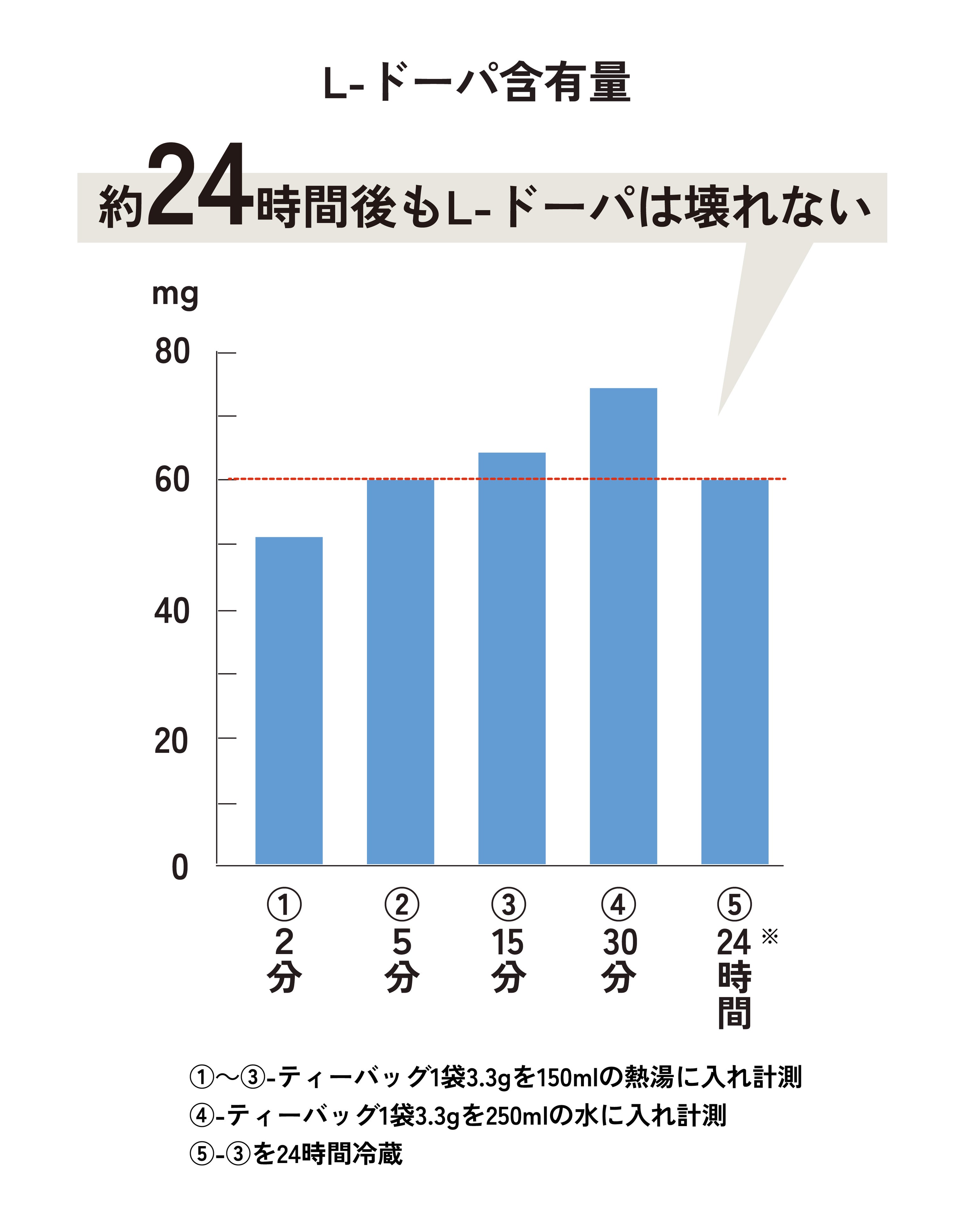 L-ドーパ含有量|60mg(1袋3.3gあたり)