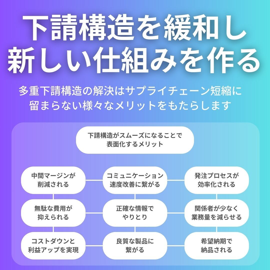 発注企業は無料、受注企業に成果報酬課金(初回取引企業と最初の取引案件額の10%のみ)が利用モデル。