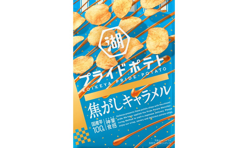 ポテトチップスの次なる定番を開拓し、ラインナップの幅を広げるアイテムとして、甘じょっぱい“ドルチェ系”に挑戦した「湖池屋プライドポテト」の新商品。甘じょっぱい味わいと、パリッと崩壊する食感が相まって、口の中でパリパリのカラメルがクラッシュするような味わいに仕上げています。