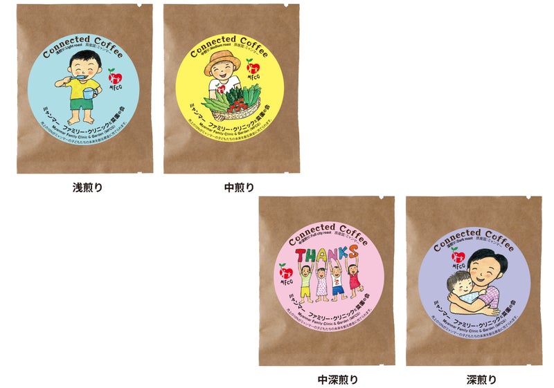 ミャンマーの無医村ミャウンミャで活動するNGOミャンマー ファミリー・クリニックと菜園の会(MFCG)を応援するコーヒーです。ミャンマーのユワンガン地方で女性だけで立ち上げた生産者グループ「Amayar Women's Coffee Group」のスペシャリティ・コーヒー豆を使用。さいたま市の障がい者就労継続支援B型「アクセシブル北大宮」で焙煎・加工したドリップバッグです。すっきりとしたキレのある飲み口が特徴。ラベルは同会のボランティアパートナーの髙橋美菜子さんが描いたものです。1袋:250円(税込)
